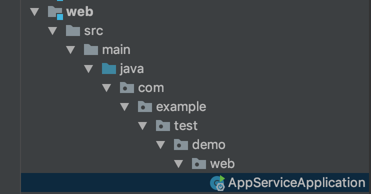 17、在web层创建com.example.test.demo.web包并添加入口类AppServiceApplication.java,目录结构如下