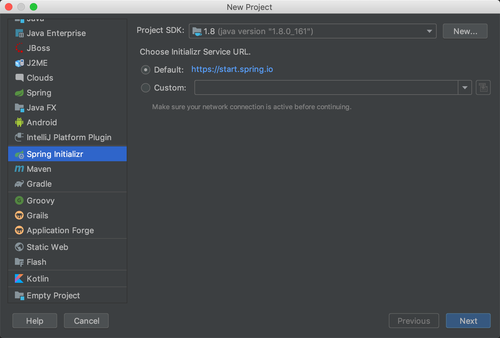 2、选择Spring Initializr,Initializr默认选择Default,点击Next